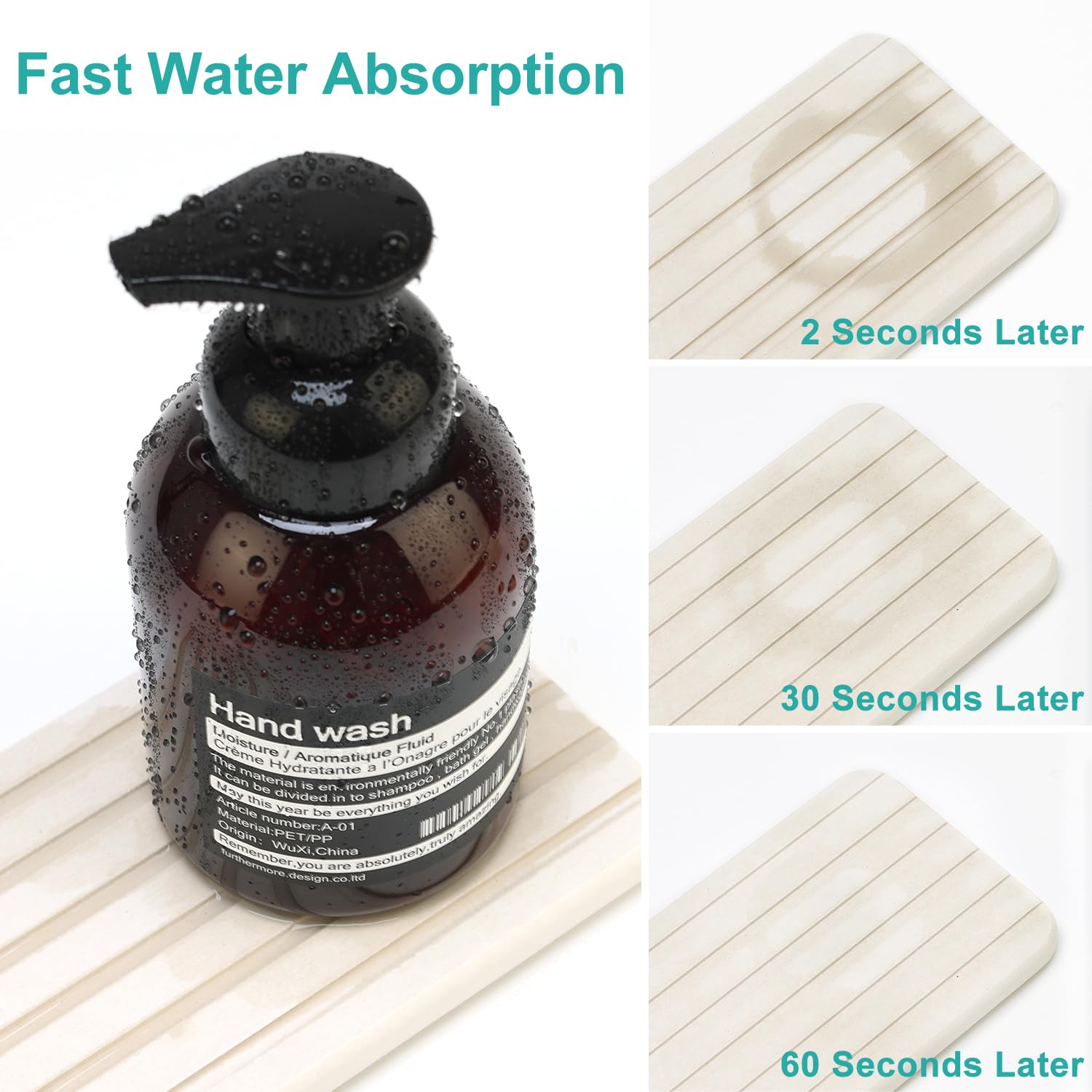 Kieselgur Abtropfmatte für Badezimmer, Waschbecken, Tablett, Küchentheke, Seifenschale, weißer Kieselgur, saugfähige Untersetzer, wasserabsorbierender Stein, schnell trocknendes Tablett, Küchenspüle